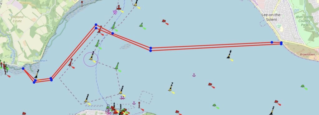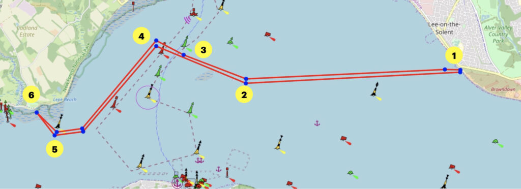 - 5. Take Lepe Buoy to Port and then aim for the beach at Lepe.