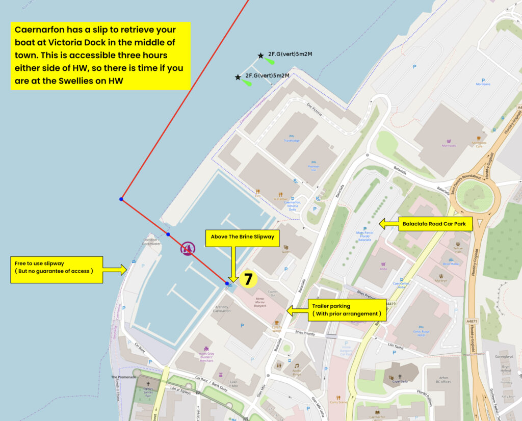 If using the slipway at ‘Above The Brine’ then with prior arrangement the trailer can be parked for £5 for the day. Contact Above The Bribe to make arrangements on 01286 677 445 or email boatyard@abovethebrine.com