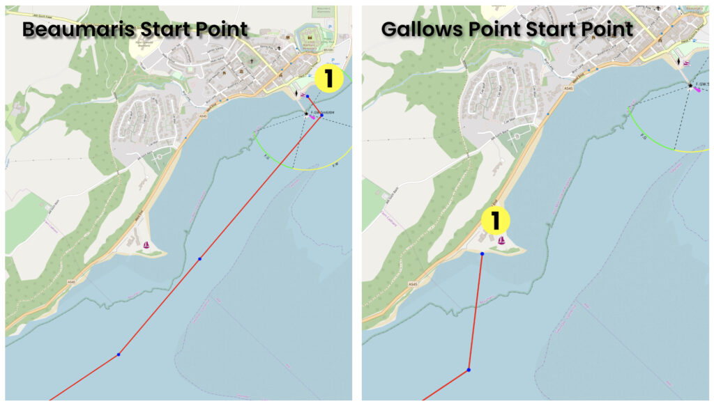 Beaumaris start point; 53°15’44.25″N – 4° 5’26.16″W